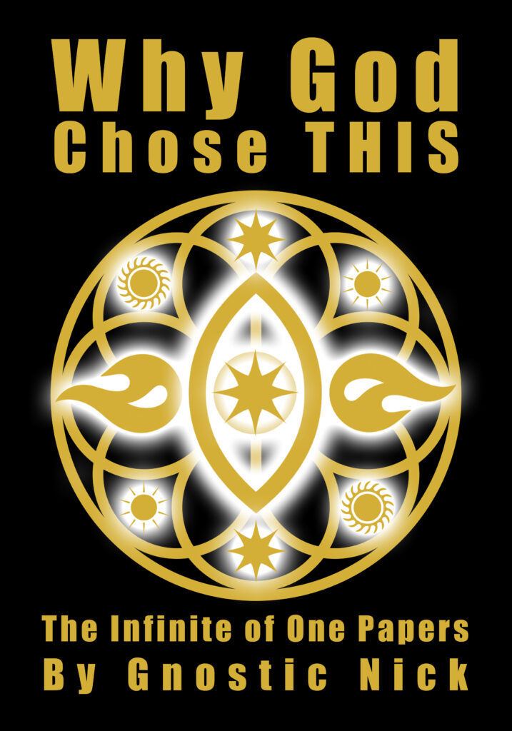 A collection of short papers written by Gnostic Nick of Infinite of One, Why God Chose THIS will lead you into the Source wordlessly whispering within every heart, yearning for The Good Word leading the mind into uncovering the Universal Truths of God buried at the ubiquitous Base of Being. We must remember that we’re holy incarnations of the Source, the saving, empowering, unifying truth that every means of divide and conquer propaganda compels us to forget, for only divided from ourselves, and from the divine truth, may we be mentally enslaved and exploited.