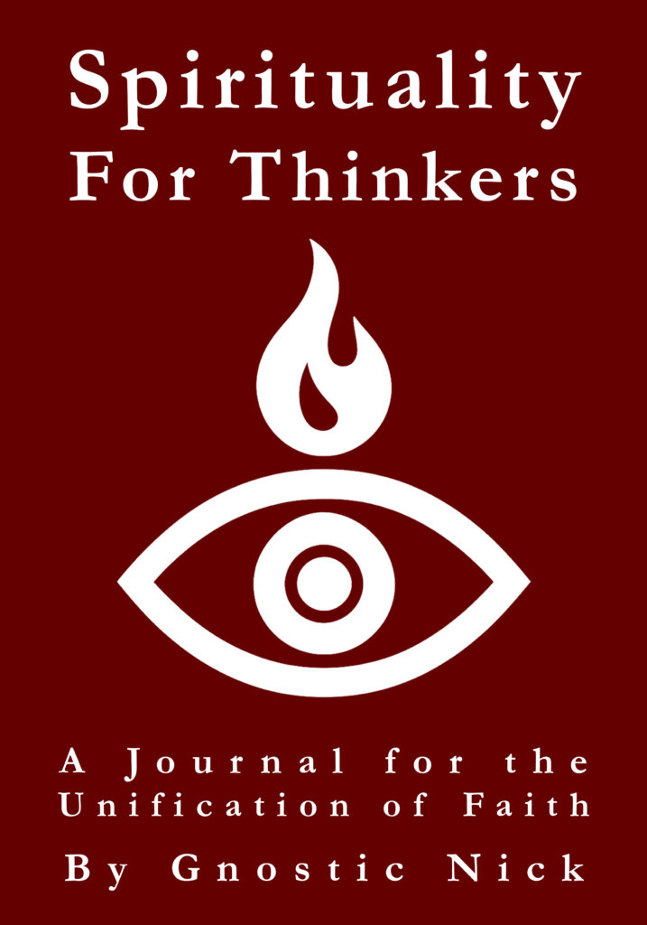 You’re a seeker that likes to think things through, without the narrowing limits of religion. You know that God exists, and that you’re a part of God, but don’t believe that God belongs to religion. You want answers to the big questions, but don’t want to join a Church group in order to receive answers that don’t fit the reasoning and science of the modern world. You know that reasoning, science and spirituality are actually perspectives upon the same truths, not incompatible competitors trying to claim the truth. You’ve come to the right place. And because I know how important and invaluable spiritual revelation is, how it’s the digging into the deepest taproot of human community and our truest, universal identity, I want to offer you those answers with a free PDF of “Spirituality For Thinkers, A Journal For The Unification of Faith.” But please consider clicking on the cover below and buying a book, both because the material manuscript is more enjoyable to read and have in hand, and because, without your support, I can’t continue my own quest to be who I know I’m meant to be: someone who helps the people awaken to their truest underlying nature, freeing them from every lie softly enslaving my holy brothers and sisters, like you, their innate divinity concealed and sold for the systemic greed of parasites like our president!