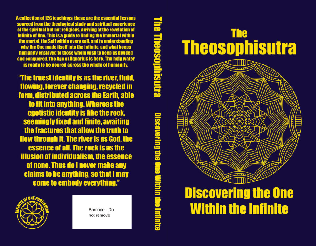 And please check out the rest of the site for more insights into the divine nature, and how this metaphysical foundation dictates progressive spirituality, morality, politics, business, economics and society in general, and how and why this progressivism is at odds with the prevailing paradigms. As with The Theosophisutra, the author requests that you buy one or more books so that he can afford to keep working, but you can read for months on this site for free. Just read down from the home page, or click on the drop down “IDEAS” tab at the top left, or read one of the book PDFs. Or go over to Activist Art Productions and buy yourself a t-shirt. Thank you! Through reading Infinite of One, may you know your unity with the One!